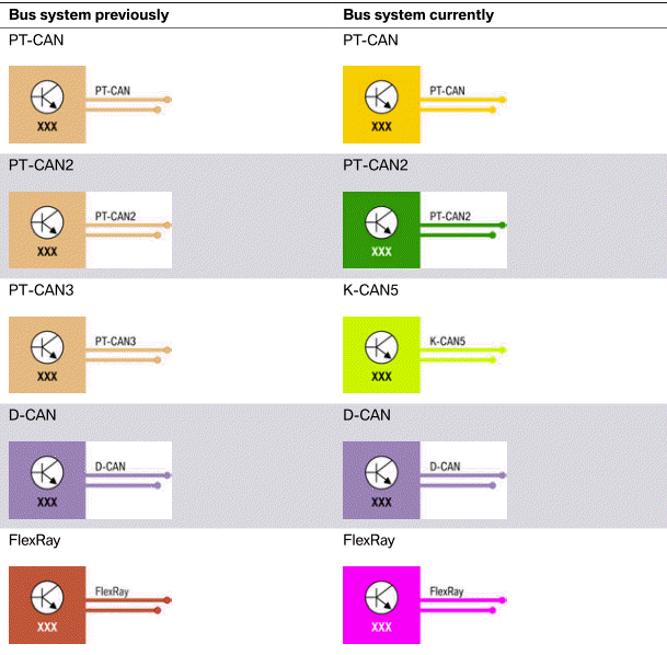 The representation of the individual bus systems and their designations have been adapted to the representation and the designation of the ISTA workshop information system.